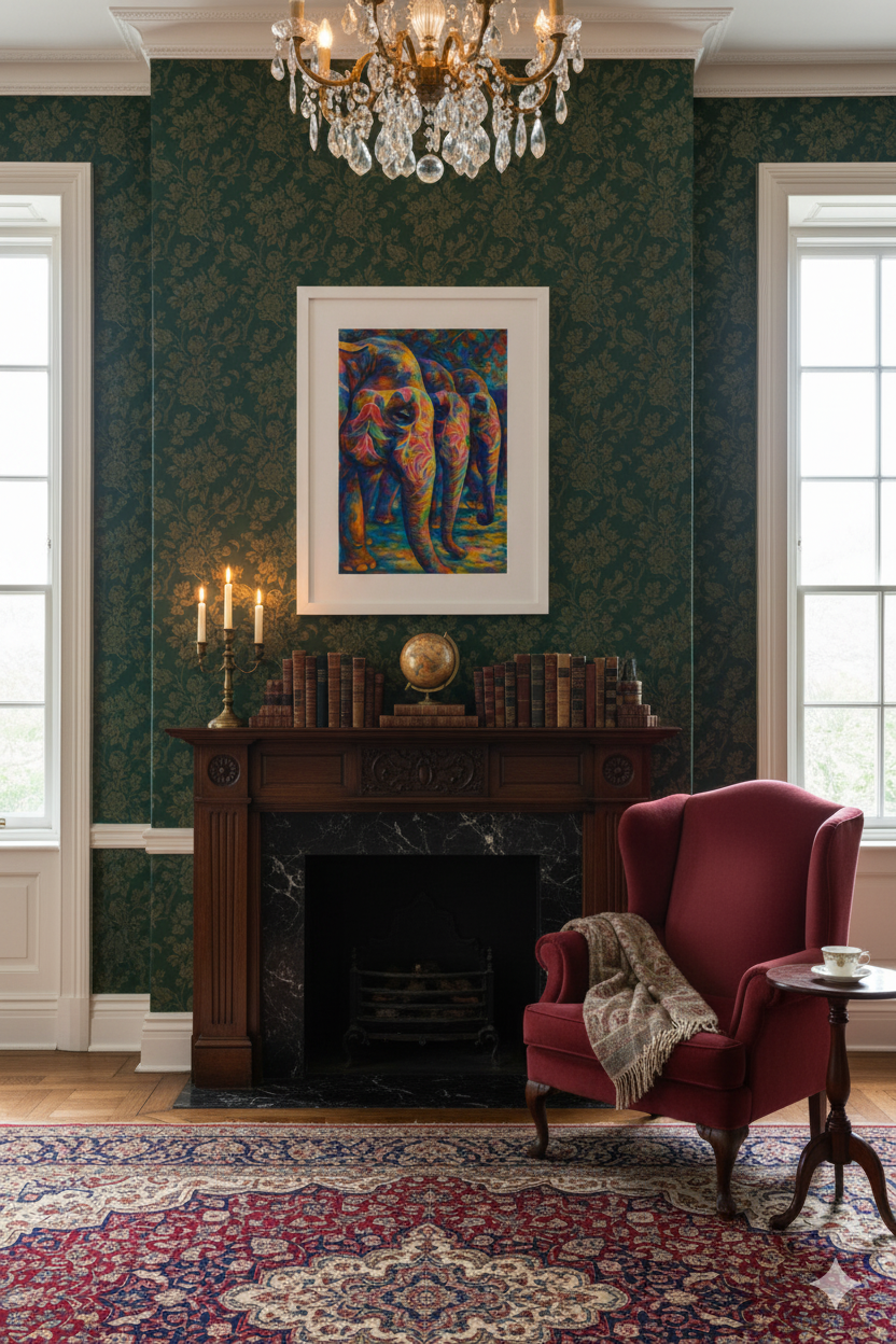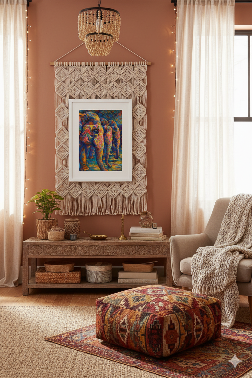 A vibrant poster capturing elephants adorned in festive colors — a visual tribute to India’s heritage of art and celebration. Each curve and hue tells a story of joy, royalty, and cultural pride. It brings a cheerful and colorful charm to modern interiors.